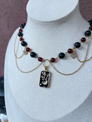 Je crée principalement des bijoux associés et inspirés de personnages de fiction, je laisse libre cours à mon imagination pour la conception de chacun.
